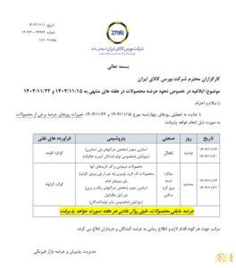 ابلاغیه بورس کالا درخصوص نحوه عرضه محصولات در هفته منتهی به ۱۵ و ۲۲ بهمن