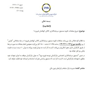 گفتنی است در پی صدور مجوز تأسیس صندوق‌های سرمایه‌گذاری مبتنی بر اوراق بهادار نقره از سوی سازمان بورس و اوراق بهادار، پذیره‌نویسی واحدهای سرمایه‌گذاری این سه صندوق از دوشنبه اول دی‌ماه در بورس کالای ایران آغاز شد. همچنین آیین افتتاح رسمی معاملات صندوق‌های سرمایه‌گذاری نقره نیز با حضور رئیس سازمان بورس و اوراق بهادار و جمعی از مدیران بازار سرمایه و فعالان اقتصادی در بورس کالای ایران برگزار شد.